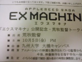 10/20に東映さんからEXMACHINA(エクスマキナ)というCGアニメ映画が公開されるのですが、公開記念の監督トークイベントを芸工大で開催させるのに成功しました!