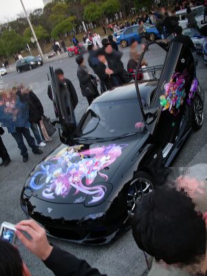 ・・・と、一部の方はもうお気付きだとおもいますが、イタ車とは、勿論イタリア車の事ではありません。漢字になおすと「痛車」。つまり、呼んで字の如く「痛い車」の事です。