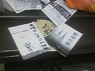 もうすぐ卒業だからと、机の上を整理していたところ、あなピグモ捕獲団の「服部の城」、「トレモロとオルタナ」、「素晴らしきこの世界」と、一年生のころの演劇「ハンラン召サルル」、「これからも」のチラシを発掘しました。どれも、僕にとって印象的な芝居で、これらが今の僕の演劇観の基礎ともなっています。